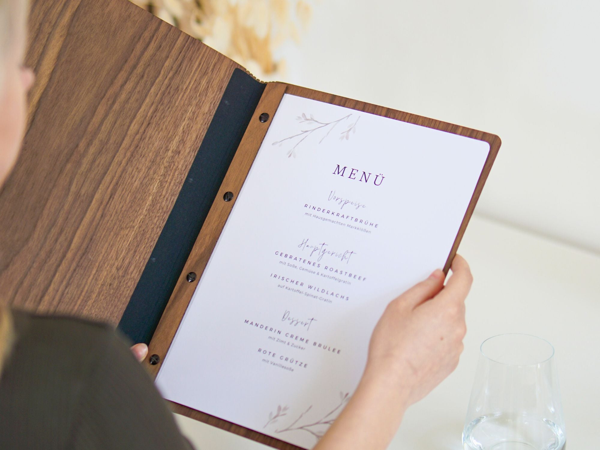 Durch präzise Lasercut-Technologie und individuelle Gravur wird jede Speisekarte zum unverwechselbaren Markenzeichen deines Restaurants.“
